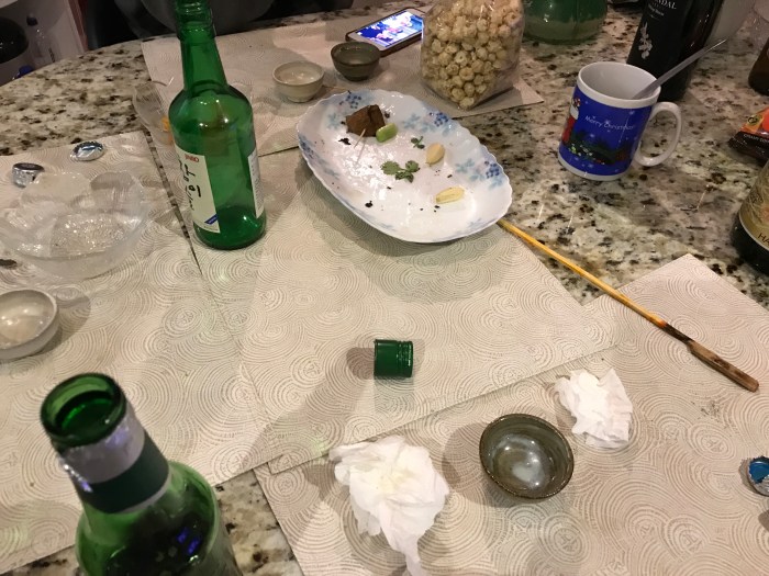 What we do in the weekend when we just want to relax at home with friends. This time we were at one friend’s house on Saturday and another on Sunday. Right atmosphere with the right people having food and drinks are the best. One of our friend really likes to cook beer snacks, not as in peanuts or potato chips but real hot food that really goes well with drinks hahaha